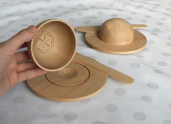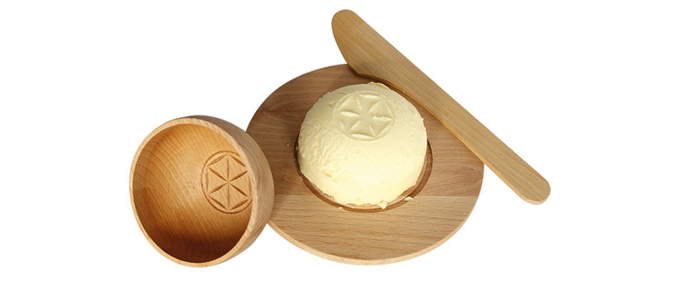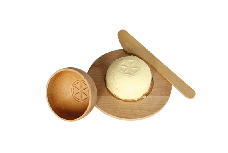 Maselniczka to projekt stanowiący alternatywę dla standardowych pojemników służących do przechowywania i podawania masła na stół. Obiekt ma zachęcać do wytwarzania masła w domu metodą ubijania w zwykłym słoiku schłodzonej śmietany. Tak przygotowany produkt przechowuje się w zaprojektowanym pojemniku, w lodówce. Pokrywkę można potraktować jako foremkę, dzięki której możemy uformować z masła „kopułkę” z odciśniętym, regionalnym wzorem. Pokrywka, podstawka oraz nożyk wykonane są z litego drewna bukowego. Projekt ma charakter edukacyjny i może służyć do zabawy z dziećmi, aby pozwolić im zrozumieć proste procesy fizyczne, a także zapoznać z g inącą tradycją.